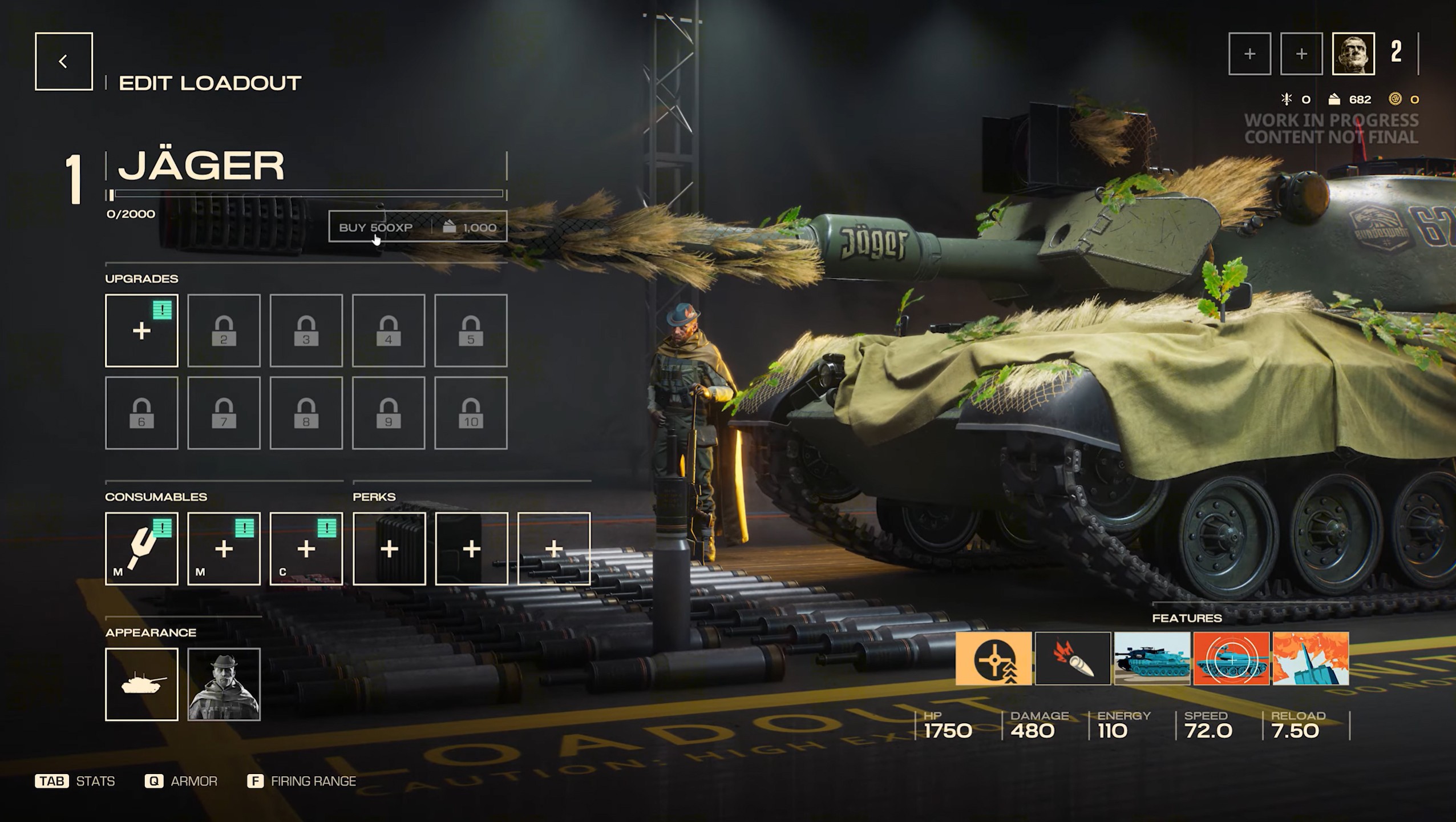 The game is still in development, and I'm not allowed to show any process. However, I can describe screenshots from the Alfa playtest that have become public through sources like WoT Express.